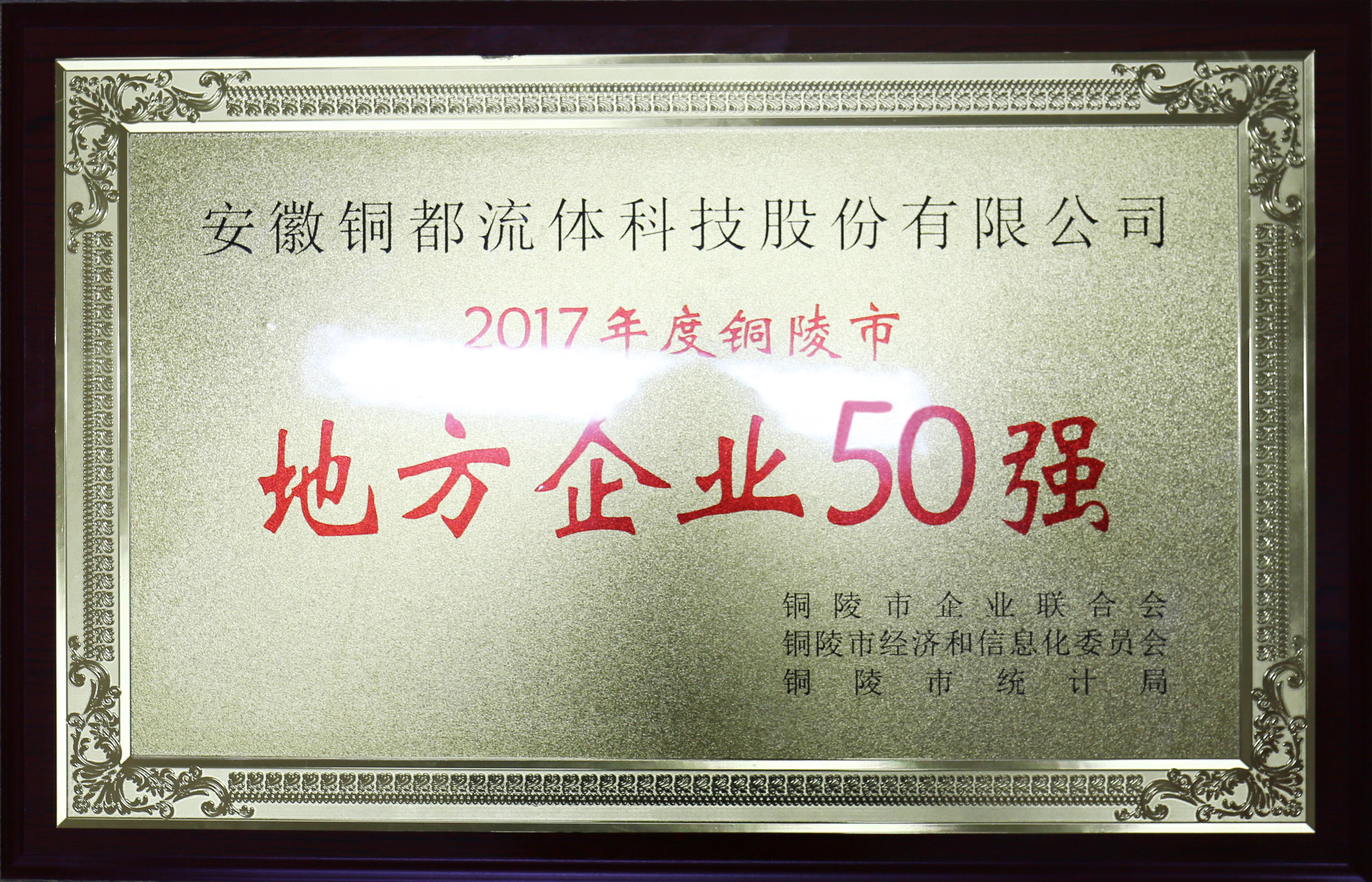 根據(jù)中共中央、國務(wù)院兩辦關(guān)于《貫徹落實〈中共中央、國務(wù)院關(guān)于營造企業(yè)家健康成長環(huán)境,弘揚優(yōu)秀企業(yè)家精神更好發(fā)揮企業(yè)家作用的意見〉分工方案》文件要求,展示銅陵市骨干企業(yè)的良好形象和發(fā)展業(yè)績,市企業(yè)家聯(lián)合會、市經(jīng)信委、市統(tǒng)計局參照國際慣例和國內(nèi)通行做法,以銅陵市地方法人企業(yè)作為申報資格,以2017年企業(yè)營業(yè)收入為主要標(biāo)準(zhǔn),開展了2017年銅陵市"地方企業(yè)50強"評比活動,安徽銅都流體科技股份有限公司榜上有名。