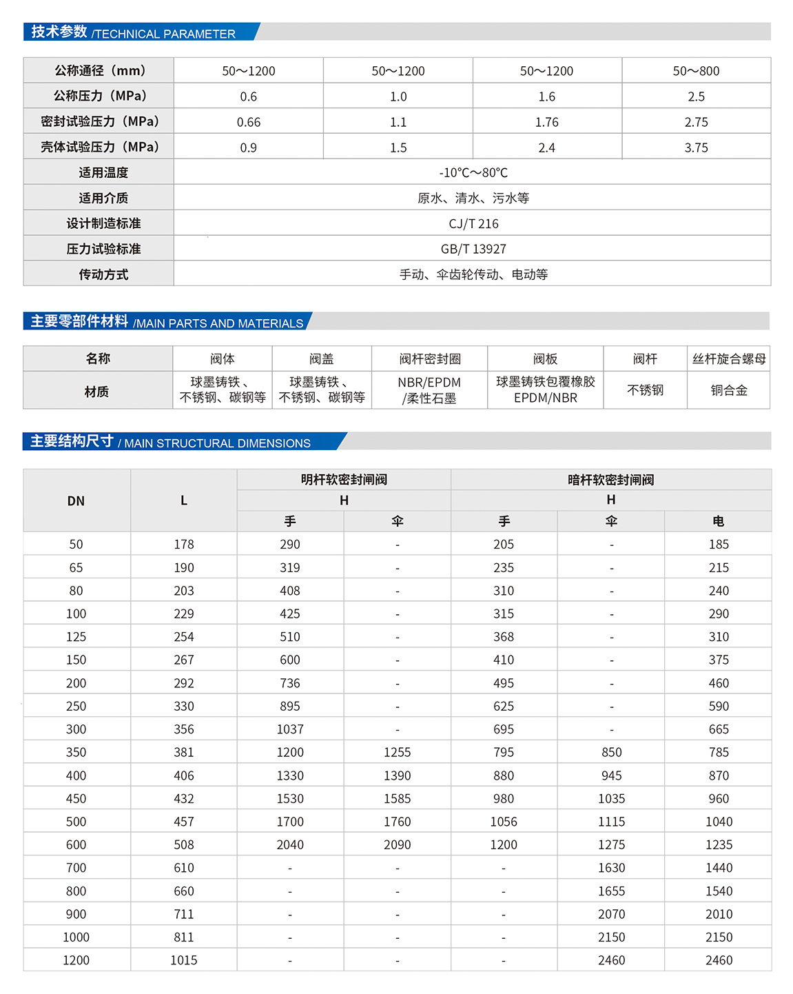 3、閘板橡膠與鑄鐵骨架之間粘間強度高。鑄鐵骨架外表面全部包覆橡膠;包膠厚度均高于國家標(biāo)準(zhǔn)規(guī)定,包膠工藝采用先進的注膠成型技術(shù),成型后的閘板表面光潔無缺陷,橡膠厚度均勻其粘合強度高,彈性好,使用壽命長。