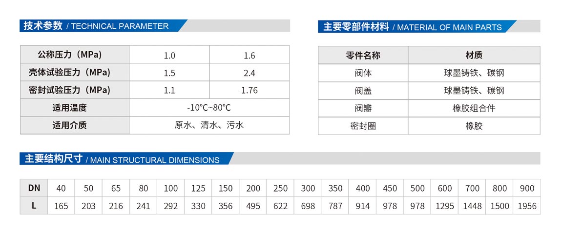 采用全流面積式設(shè)計(jì),水頭損失小,不易堆積雜物,密封采用斜板式設(shè)計(jì),關(guān)閉行程短,閥瓣采用橡膠與鋼板經(jīng)高溫壓制而成,耐沖涮,密封性能好,產(chǎn)品結(jié)構(gòu)簡單、維護(hù)和保養(yǎng)方便。